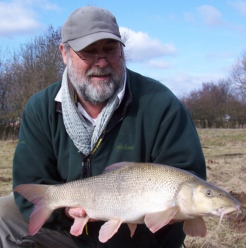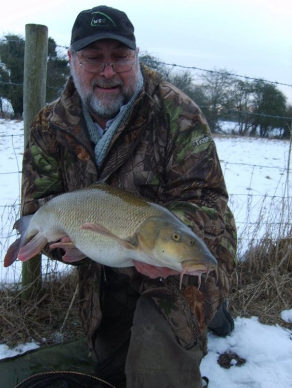 Terry Lathwell with a float caught Barbel from a Great Ouse tributary.